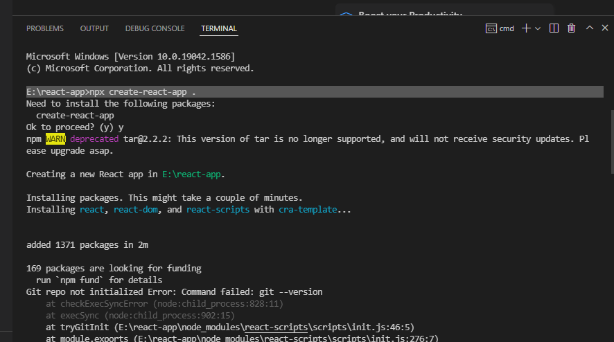 npx create-react-app .