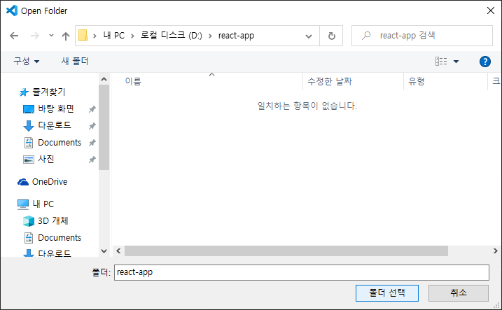 원하는 경로에 영문으로 폴더를 하나 만들어주고 그 폴더를 선택한다.
