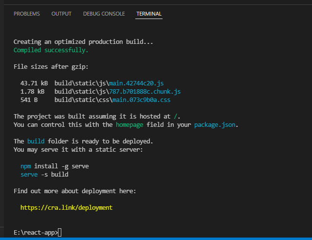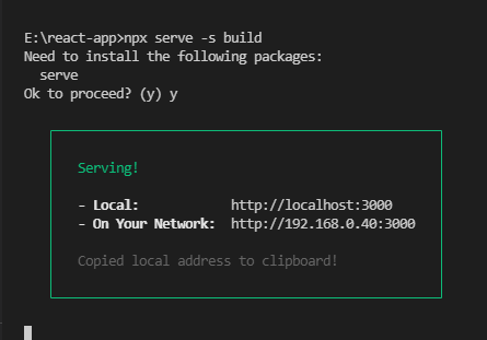 serve -s build 라는 명령어를 통해 실행할 수도 있다고 알려주고 있다.