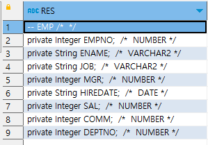 -- 실행하면 해당 테이블의 컬럼들을 카멜케이스가 적용된 형태의 결과값을 볼 수 있다.