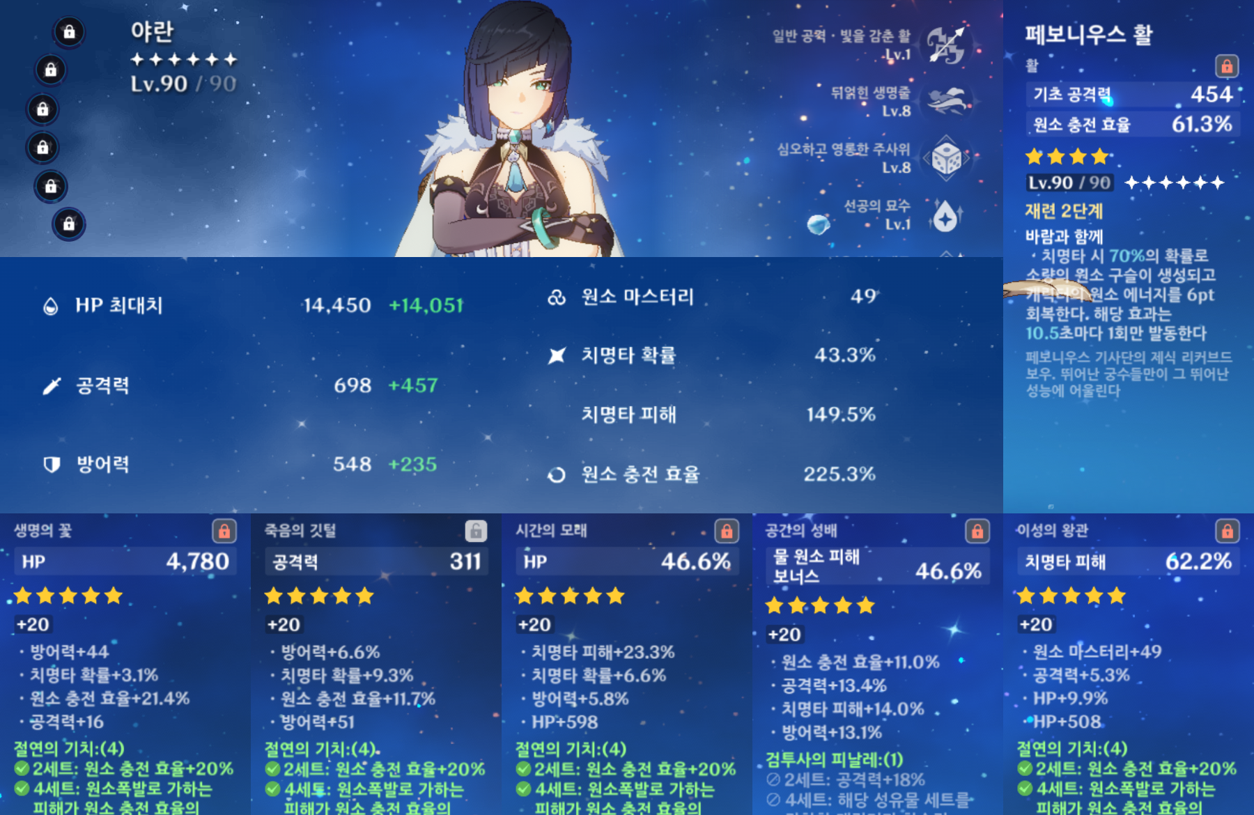 난 서포터로 쓰기 때문에 페보활을 줬다. 사실 이것 말고는 야란에게 줄 활을 가지고 있지 않다.