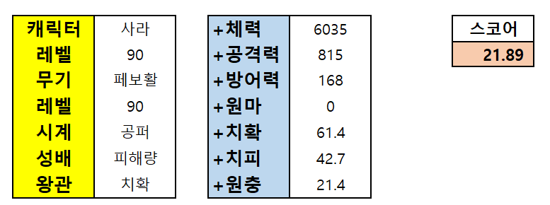 번원피 성배가 나와준 덕에 조금이나마 스팩업이 가능해졌다.