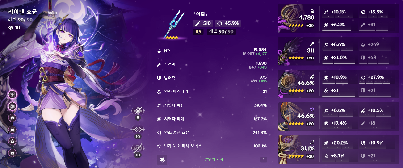 번개속성 창 캐릭. 번개신 라이덴. 현재까지 원신 세계관에서 최고의 딜러라 생각함. 명함도, 1돌도 물론 충분히 좋지만, 라이덴은 2돌이 킹갓이다. 난 처음 출시 했을 때 1돌까지 해줬고, 라이덴